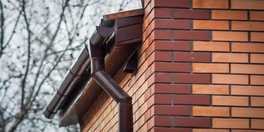 Чтобы надёжно зафиксировать водосточный стояк, потребуются держатели трубы с крепежом, подходящим для материала стен – кирпича или дерева.