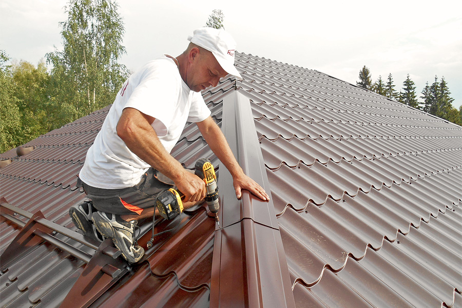 Монтаж планок начинают с любого края крыши. Сначала укладывают уплотнитель. Здесь применяют два способа: