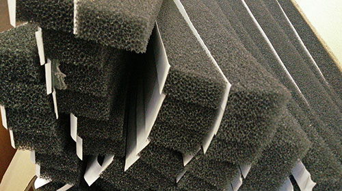 - приклеивают уплотнитель на обратные поверхности монтажных полок;