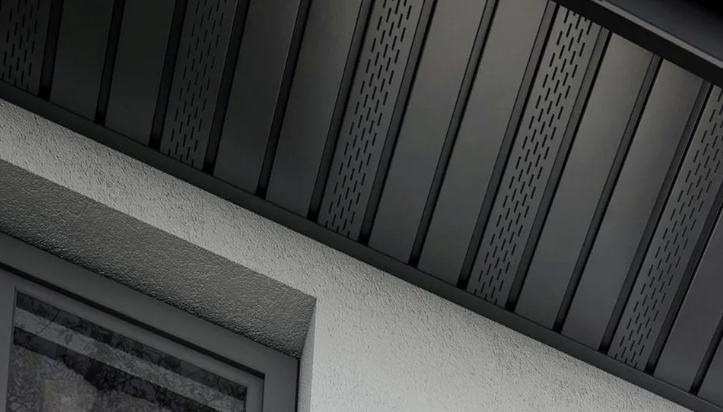 Разновидностью частично перфорированных софитов являются панели со скрытой перфорацией – отверстиями, расположенными не на пластинах, а между ними на рёбрах жёсткости. Такая подшивка выглядит сплошной, но при этом обеспечивает неплохую вентиляцию.