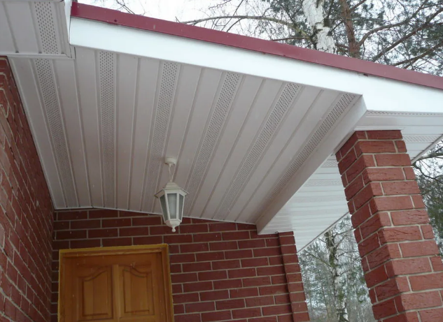 Правильно установленные софиты не препятствуют циркуляции воздуха, обеспечивая вентиляцию кровли. Таким образом, предотвращается возникновение процессов парообразования, гниения.