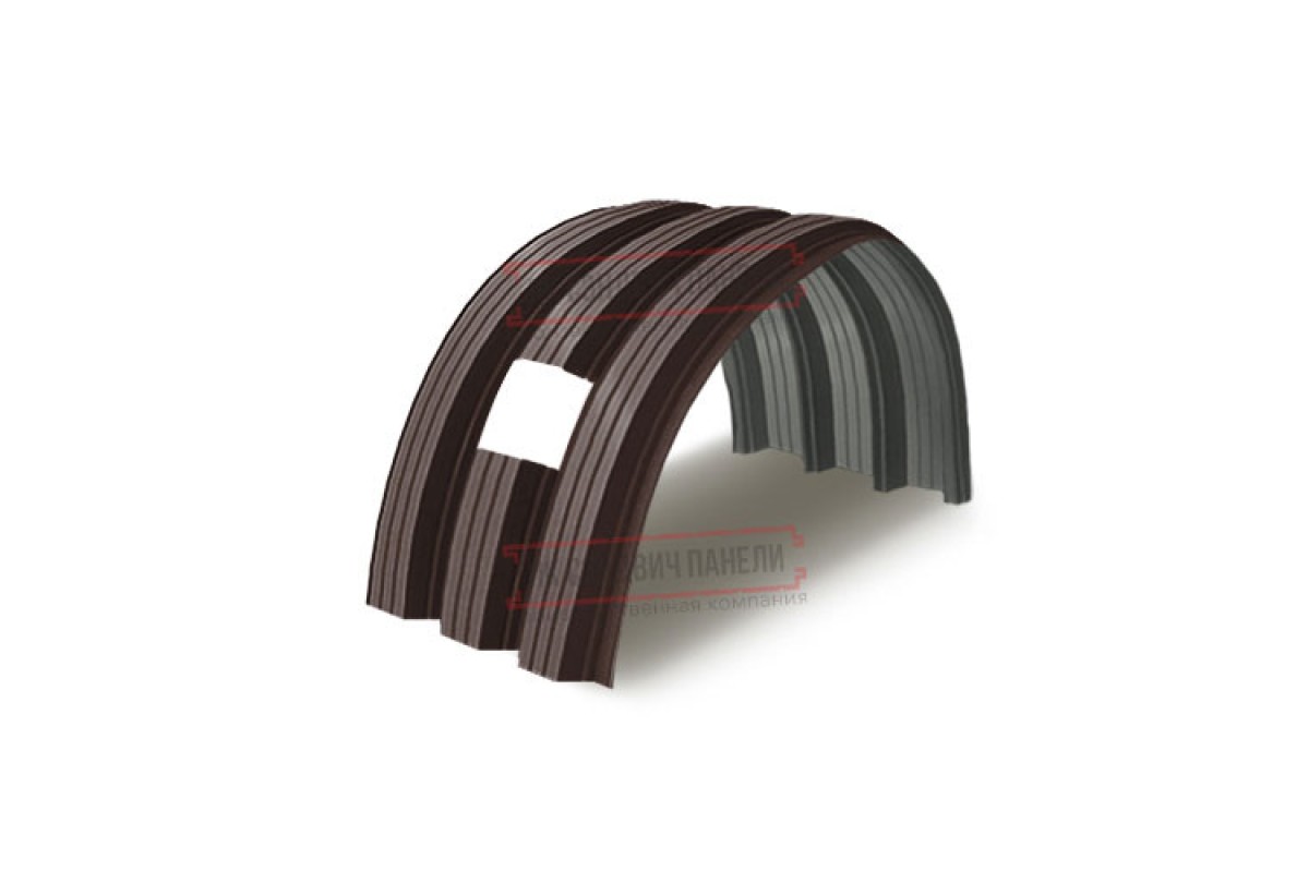 Купить продольно гнутый профнастил для укрытий конвейеров Н112ПГ-807, 1,0, в полимерном покрытии под заказ по индивидуальным размерам в любом объеме.