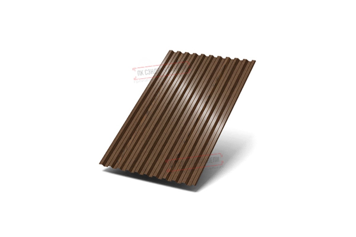 Профлист с пометкой С-21 означает, что это «стеновой» тип с глубиной профиля 21 мм. Тем не менее, С-21 – один из наиболее многофункциональных стройматериалов, применяемый не только для фасадов. Он подойдёт как для облицовки стен, так и для монтажа кровельного покрытия, установки заборов. Вполне успешно С-21 находит применение при создании складских помещений, торговых павильонов, быстровозводимых зданий, а также в качестве элемента сэндвич-панелей. С-21 отлично подходит в качестве стройматериала для Профилированных листов. Для этого он обладает хорошей несущей способностью. Расположенные на небольшом расстоянии друг от друга трапециевидные волны придают ему необходимую жёсткость. А пропорциональный рисунок гофры, одинаковый с обеих сторон, обеспечивает Профилированным листам эстетичный внешний вид. В зависимости от назначения, мы можем выпустить профиль С-21 с различной толщиной металла от 0,4 до 0,7 мм. Для увеличения срока эксплуатации и внешней привлекательности, профлист изготавливается с финишным покрытием различных оттенков и фактур, включая покрытия под камень, дерево, кирпич.Покрытие ECOSTEEL® матовый: