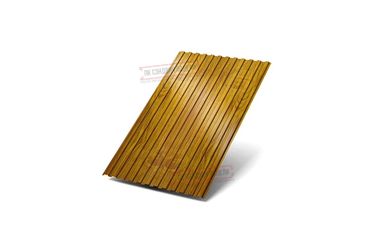 Профилированный лист МП10х1100 ECOSTEEL_T-ЗолотойДуб-0.5 — стальные листы холодного проката толщиной 0.5 мм, обработанные декоративно-защитным покрытием Экостил текстурированный. Это отделочный материал, который применяют для монтажа фасада особенно в стиле хай-тек. Профилированный лист МП10х1100 ECOSTEEL_T-ЗолотойДуб-0.5 пользуется спросом в Мурино по причине своей экономичности и практичности. При покупке материала обращайте внимание на рельеф: чем более он усилен, тем жёстче профлист.
