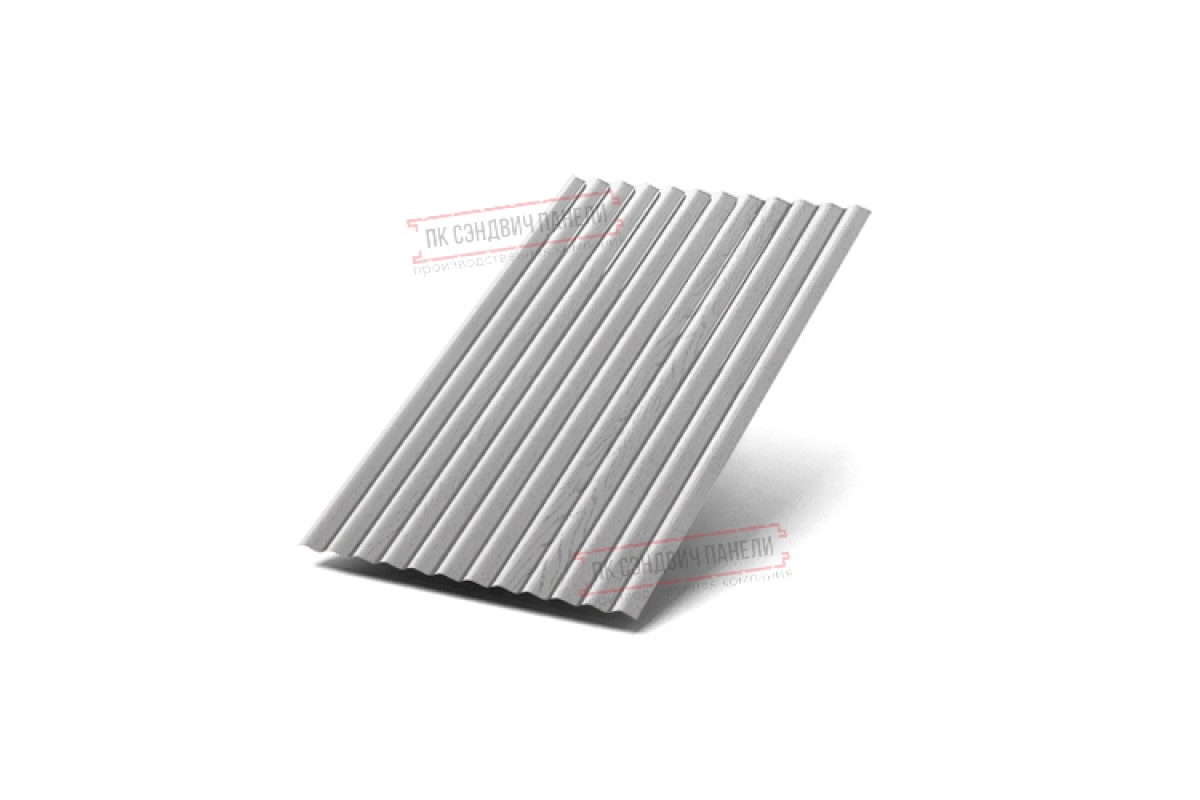Уникальный волнообразный профиль – в отличие от остальных марок гофрированного листа, он не имеет прямых углов. Такая модификация и толщина металла от 0,45 до 0,7 мм делают этот стройматериал отличным решением для возведения заборов и обшивки внешних стен нежилых зданий склады, цеха, автосервисы . Профлист «Волна» успешно сочетает в себе отличные технические характеристики с эффектным обликом. В качестве исходного сырья для изготовления «Волны» выступает тонколистовая сталь промышленной оцинковки. Она отлично переносит даже тяжёлые климатические условия: УФ-излучение, ветер, тяжёлый снег. А защитное полимерное покрытие дополнительно предупреждает коррозию и прочие физико-химические процессы. При сборке-18 используются особые угловые детали округлой формы, которые завершают облик всего строения и создают ему необычный вид.Покрытие ECOSTEEL® матовый: