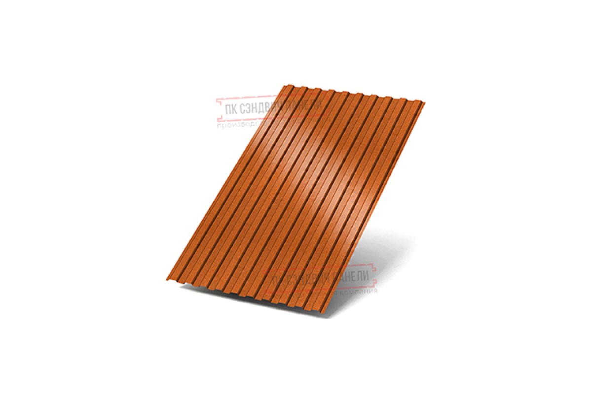 Профилированный лист представляет собой холоднокатаные листы стали толщиной 0.5 мм, обработанные декоративно-защитным покрытием Агнета двухсторонний. Профилированный лист С8х1150 AGNETA-CopperCopper-0.5 — оптимальный материал для облицовки фасада в стиле хай-тек. Профилированный лист С8х1150 AGNETA-CopperCopper-0.5 популярен в Мурино по причине своей экономичности и неприхотливости. При покупке данного материала помните: чем рельефнее профлист, тем выше его прочностные показатели. С8 – наименее рельефный и весьма недорогой профиль. Его способность выдерживать большие нагрузки относительно невелика, поэтому такой профнастил не применяется в конструкциях, требующих повышенной жёсткости. Как правило, С8 применяют в качестве стенового облицовочного материала, а также для строительства заборов и монтажа потолков. Характеризуясь маленькой высотой – всего 8 мм – он вместе с тем имеет максимальную полезную ширину – 1150 мм. Как правило на изготовление С8 идёт стальной лист толщиной от 0,4 до 0,7 мм. Такой прочности стали будет достаточно для отделки стен или устройства ограждений в климатических зонах с низкой ветровой нагрузкой. Для вспомогательных конструкций туалетов, сараев, времянок, бытовок в Компании Профлист Панель вы можете заказать оцинкованный профнастил толщиной 0,35 мм, чтобы сэкономить, когда есть необходимость.