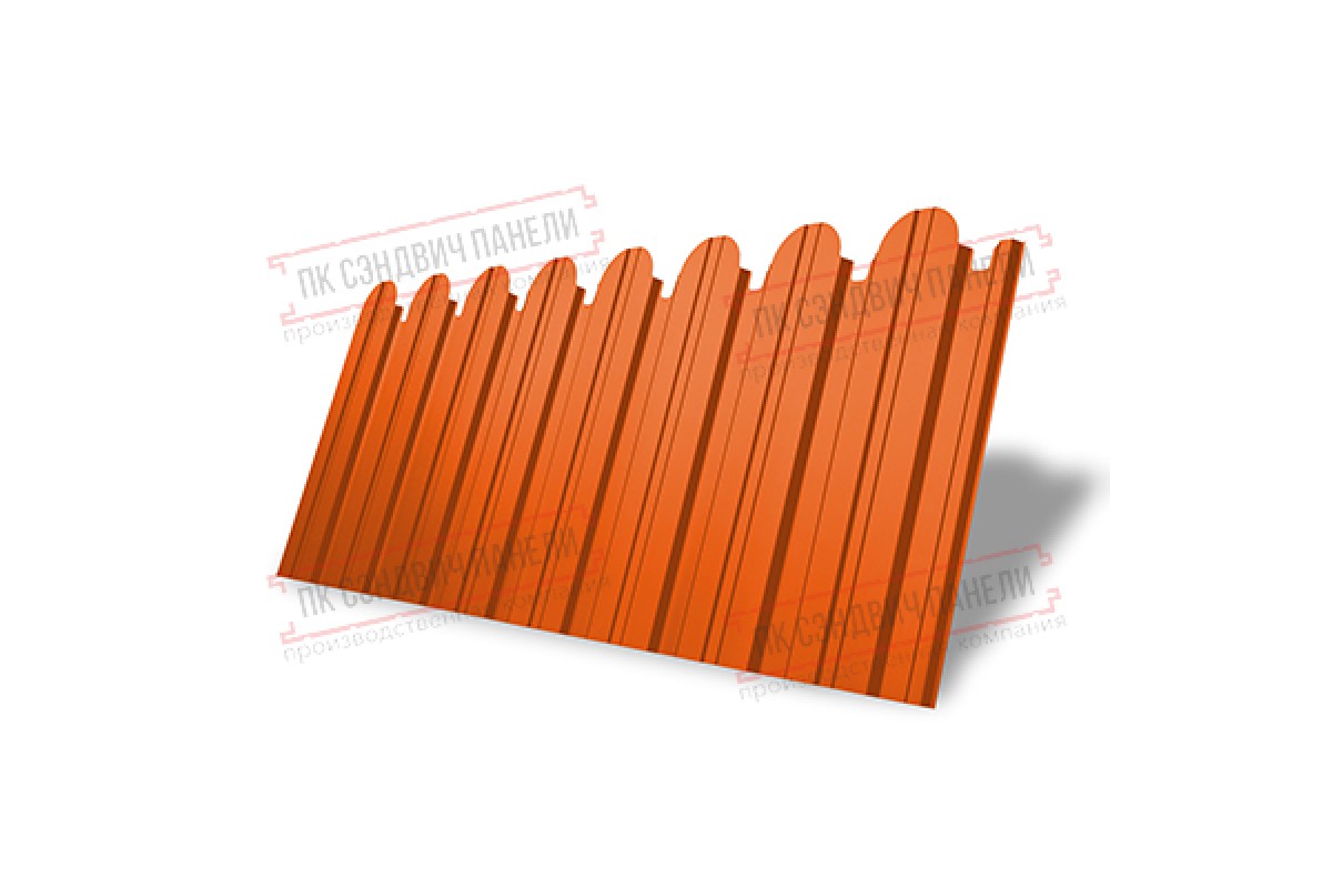 Купить профнастил фигурный С10 - 0,45 Окрас - А, ПЭ- с пленкой RAL 2004 оранжевый по приличной цене.