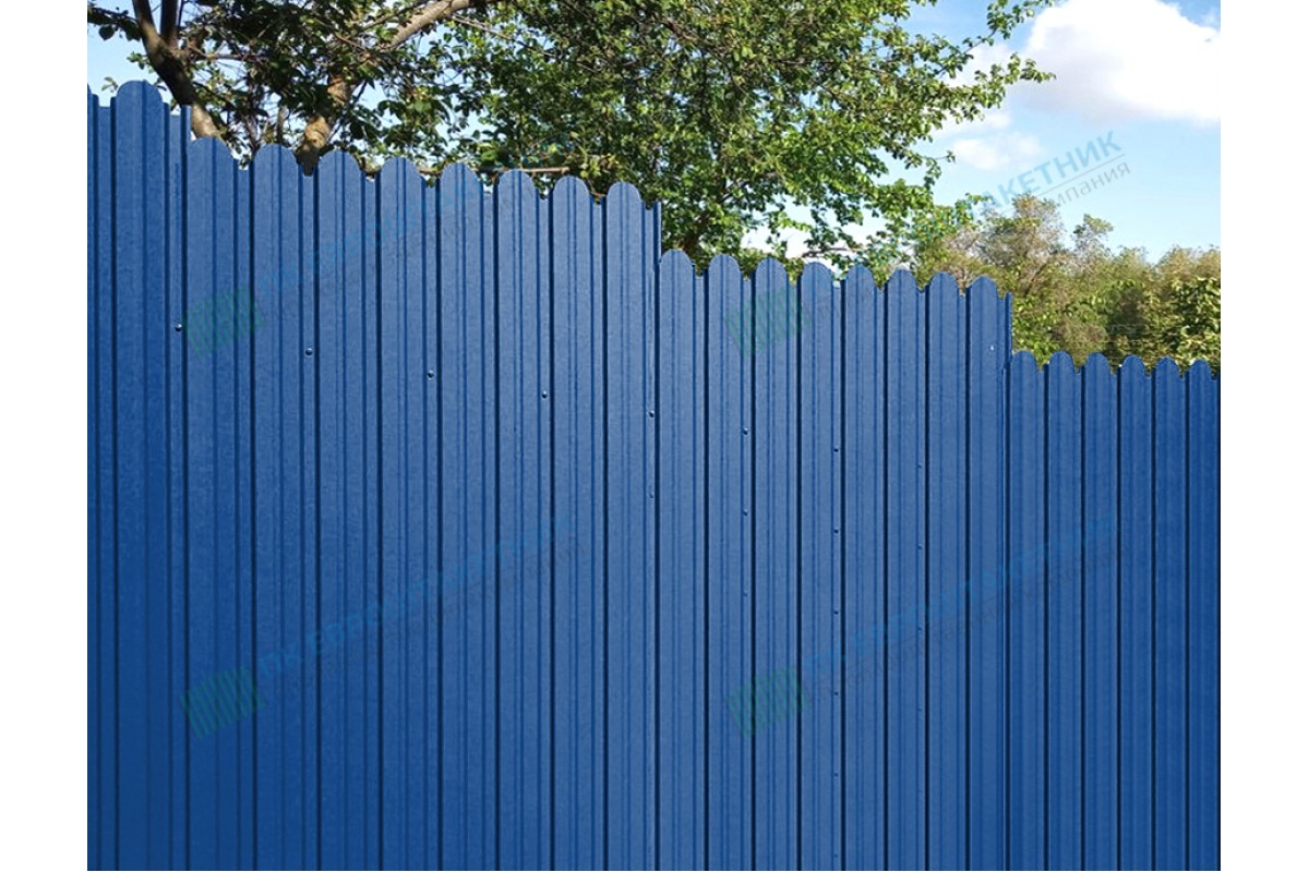 Профнастилом с фигурной кромкой обустраивают заборы не только дачных участков, но и частных городских домов, коттеджей. Такие заборы долговечны и очень красивы. Отличным дизайнерским дополнением к такому забору могут стать разнообразные панели, кирпичные, металлические, бетонные или каменные столбы.