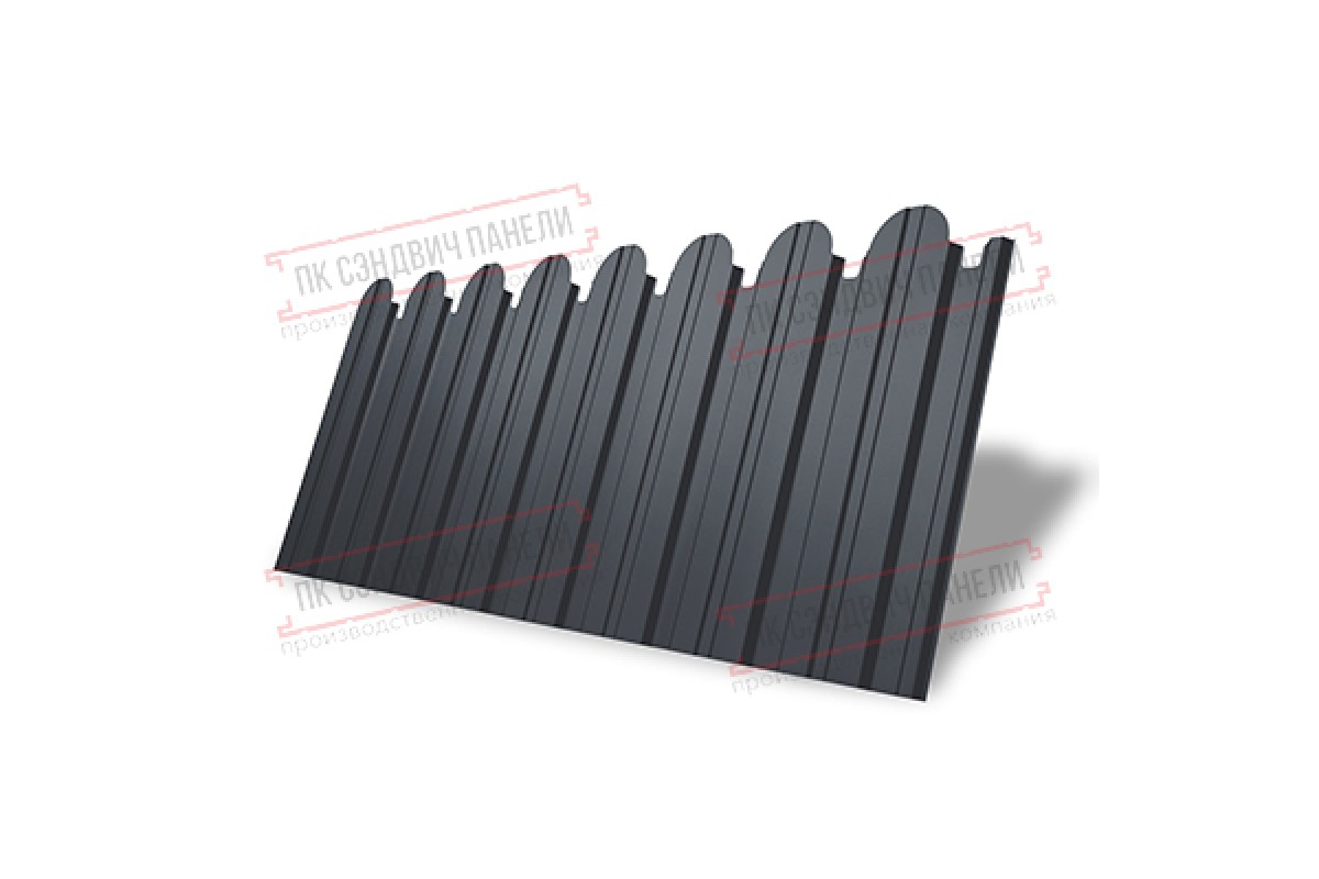 Купить профнастил фигурный С10 - 0,5 Окрас - А, Satin с пленкой RAL 7024 мокрый асфальт по доступной цене.
