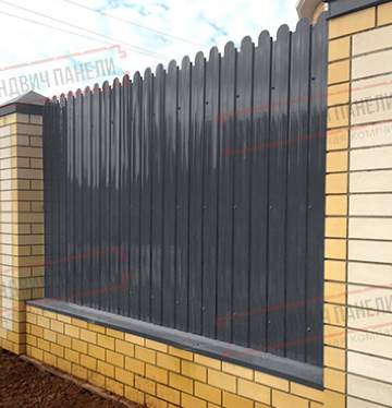 Отличным дизайнерским дополнением к такому забору могут стать разнообразные панели, кирпичные, металлические, бетонные или каменные столбы.