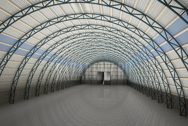 Строительство бескаркасных арочных ангаров позволяет существенно сэкономить финансы на материале, а также уменьшить трудозатраты при их возведении. За счет легкости конструкции и отсутствия несущих металлических элементов на фундамент не приходится большая нагрузка.