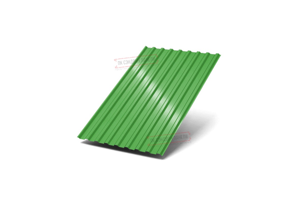 Профнастил МП20-1100 ПЭ-6018-0.5 широко применяется в Мурино для монтажа кровли. Изначально он представляет собой стальной оцинкованный лист толщиной 0.5 мм с покрытием. Проходя процедуру холодного проката, металл принимает волнообразный вид. Несущая способность профилированного листа гораздо выше плоского.