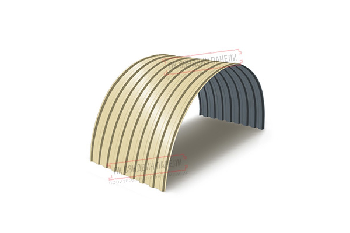 Арочный профнастил МП20ПГ-0.4 в цвете RAL 1014 (слоновая кость) — это элегантное и универсальное решение для создания легких, но прочных арочных конструкций с мягкой и теплой эстетикой. Профиль МП20ПГ с высотой волны 20 мм идеально подходит для холодного гиба, что позволяет легко формировать из него изящные и функциональные криволинейные поверхности. Изготовленный из высококачественной оцинкованной стали толщиной 0.4 мм, материал обеспечивает достаточную прочность для большинства применений, при этом оставаясь легким и экономичным. Полиэстерное покрытие не только придает профнастилу нежный и благородный оттенок слоновой кости, но и надежно защищает металл от воздействия ультрафиолетового излучения, атмосферных осадков и умеренных механических повреждений, сохраняя его привлекательный вид на долгие годы. Общая ширина листа 1100 мм способствует удобству и скорости монтажа, минимизируя количество стыков. Арочная форма, которую можно создать из этого профнастила, значительно увеличивает несущую способность конструкции, позволяя перекрывать большие пролеты без необходимости в массивных внутренних опорах, что делает его идеальным выбором для объектов, где важна воздушность, эстетика и функциональность.
