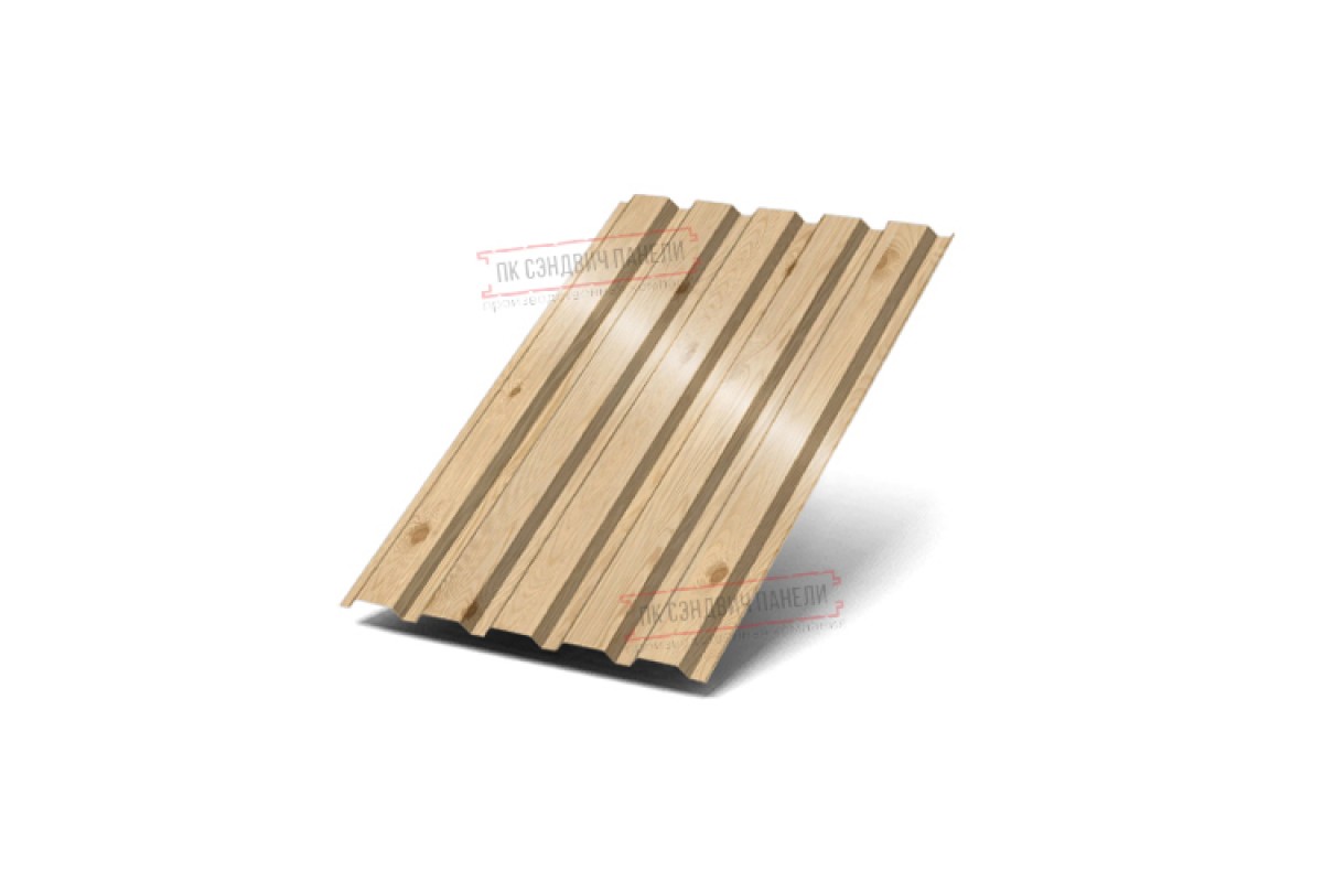 Профнастил с глубиной гофры 35 мм. Обладает ровными полками, без добавочных усиливающих канавок. Но сама матрица листа с повторением широких нижних и узких верхних полок обеспечивает данному профнастилу хорошую устойчивость к скручиванию и прочность на изгиб. Благодаря своим техническим характеристикам,-35 успешно находит применение в самых разных областях. Это могут быть: строительство щитовых сооружений, заливка фундамента в виде армирующей основы , монтаж внутренних перегородок в промышленных зданиях, перекрытие кровли, обшивка фасадов, установка ограждений. Несущий профнастил отличается небольшим весом, что заметно облегчает его транспортировку и установку. В зависимости от области использования профлиста, мы предлагаем вам выбрать необходимую толщину металлопроката – от 0,45 до 0,9 мм.Покрытие ECOSTEEL®: