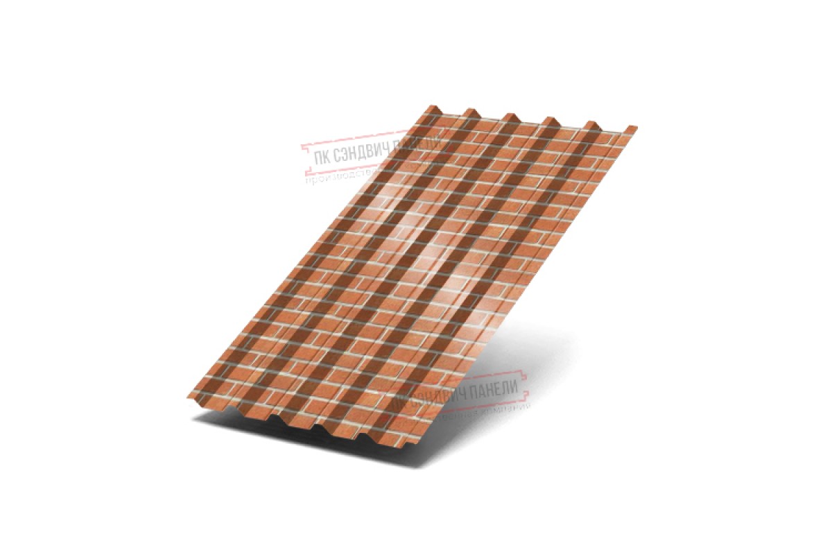 Профнастил С44-1000 ECOSTEEL-Кирпич-0.5 широко применяется в Мурино для оформления кровли. Изначально он представляет собой лист оцинкованной стали толщиной 0.5 мм с покрытием. Проходя процедуру холодного проката, сталь принимает волнообразный вид. Жёсткость такого листа на порядок выше плоского.