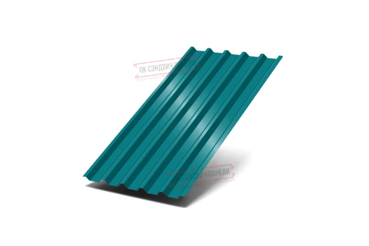 Профнастил С44-1000 Полиэстер RAL-5021-0.45 часто используется в Мурино для монтажа кровли. Изначально он представляет собой стальной оцинкованный лист толщиной 0.45 мм с покрытием. Проходя процедуру холодного проката, металл принимает волнообразный вид. Такая форма придает профилю несущую способность.