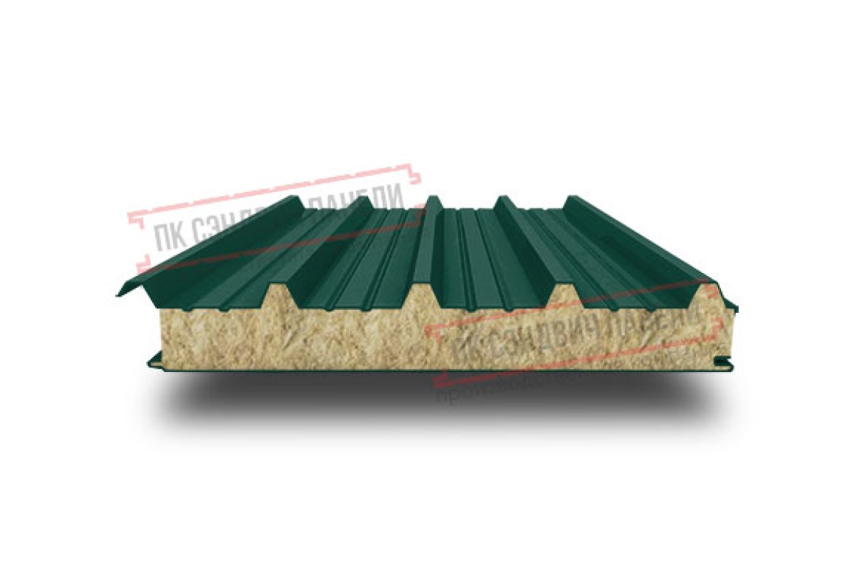 Купить сэндвич панель акустическую кровельную с минеральной ватой, ширина 1200 мм, толщина 100 мм, 0.5/0.5, RAL6005 под заказ по индивидуальным размерам в любом объеме.