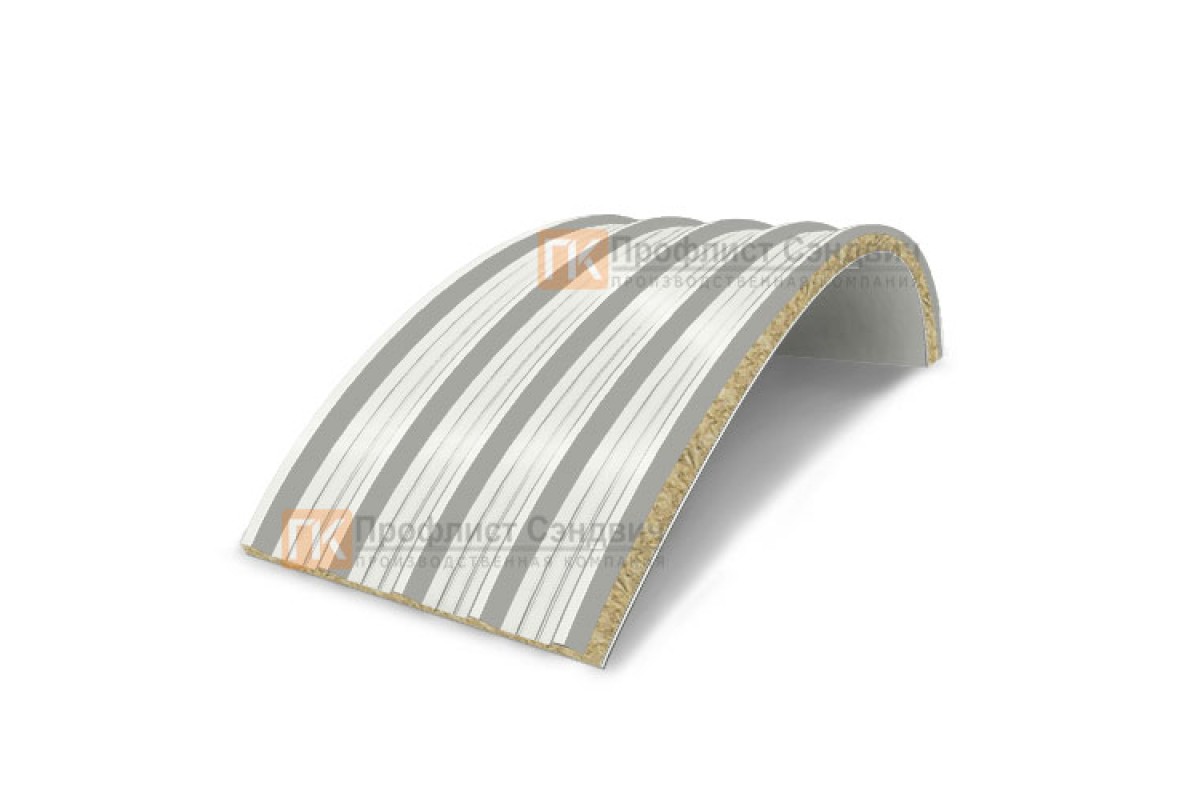 Купить сэндвич-панели арочные с минеральной ватой, ширина 1000 мм, толщина 20 мм, 0.5/0.5, RAL9003 недорого для надежной эксплуатации в любых условиях.