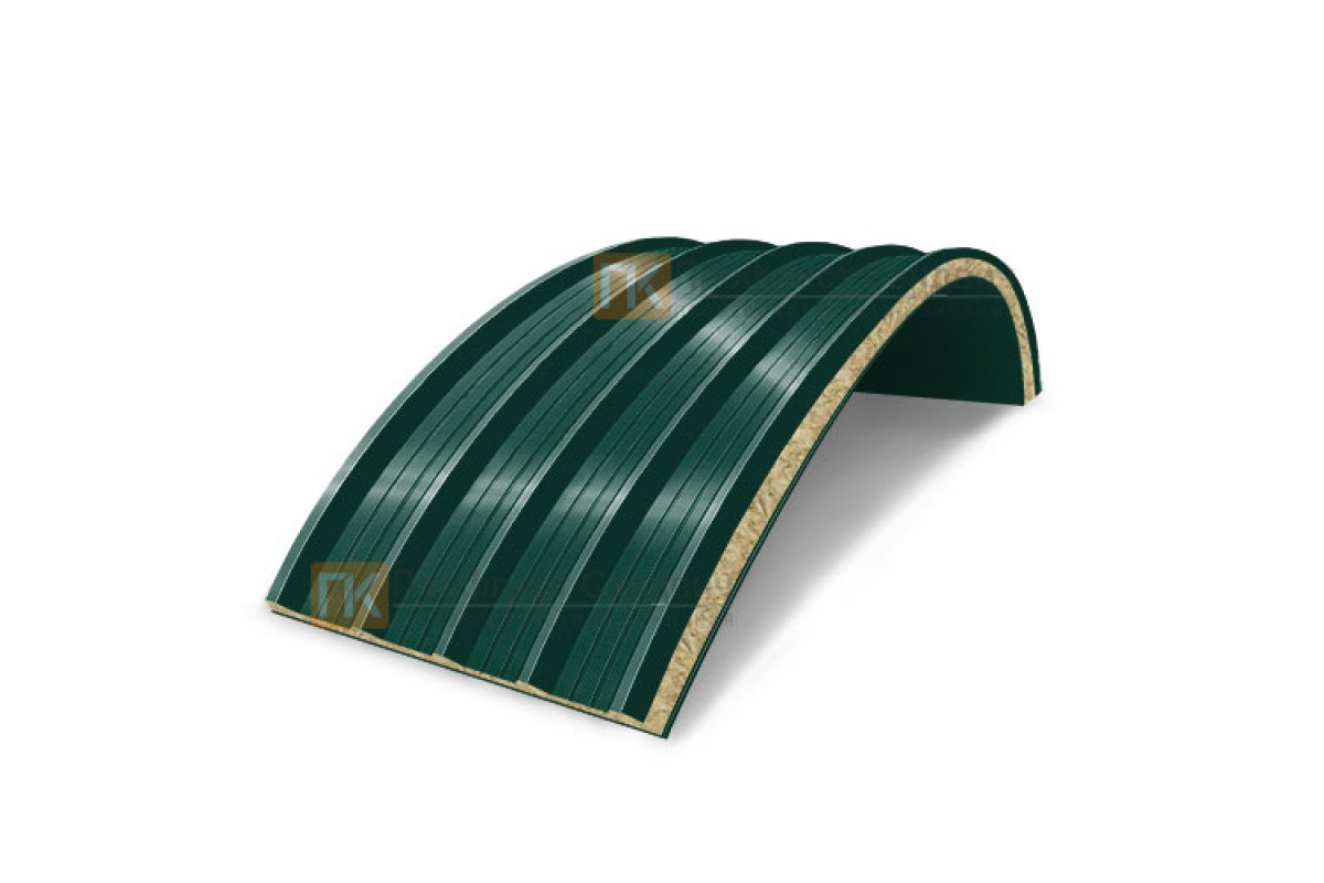 Купить сэндвич-панели арочные с минеральной ватой, ширина 1000 мм, толщина 80 мм, 0.5/0.5, RAL6005 по наиболее выгодной цене оптом и в розницу.