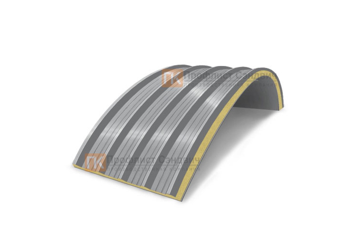 Купить сэндвич-панели арочные с пенополиизоциануратом, ширина 1000 мм, толщина 80 мм, 0.5/0.5, RAL7004 недорого. Цены и характеристики на сайте. Сертифицировано.
