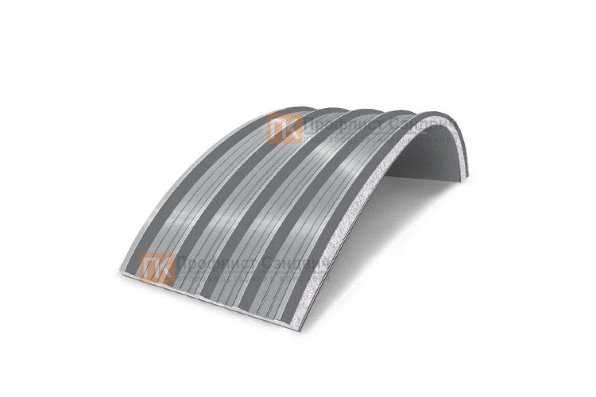 Купить сэндвич-панели арочные с пенополистиролом, ширина 1000 мм, толщина 60 мм, 0.5/0.5, RAL7004 по самым низким ценам среди всех предложений