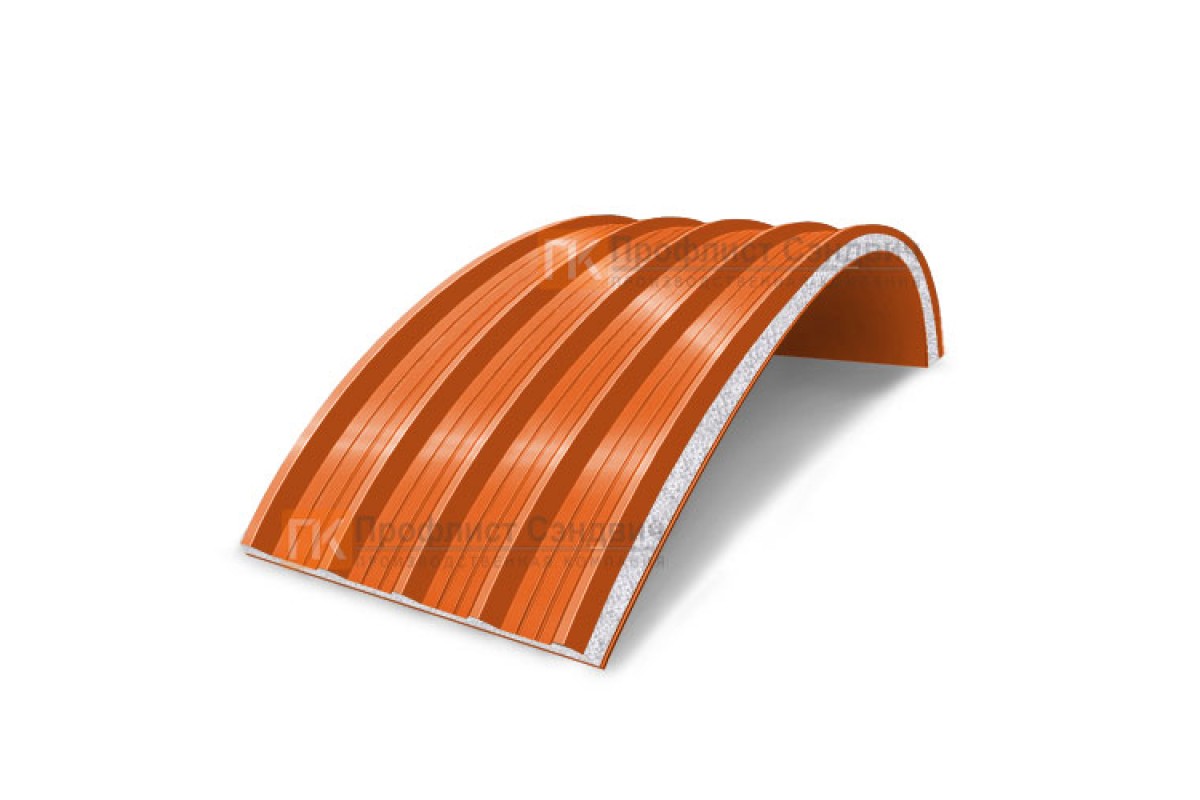 Купить сэндвич-панели арочные с пенополистиролом, ширина 1000 мм, толщина 80 мм, 0.5/0.5, RAL2004 в любом объеме с удобной формой оплаты.