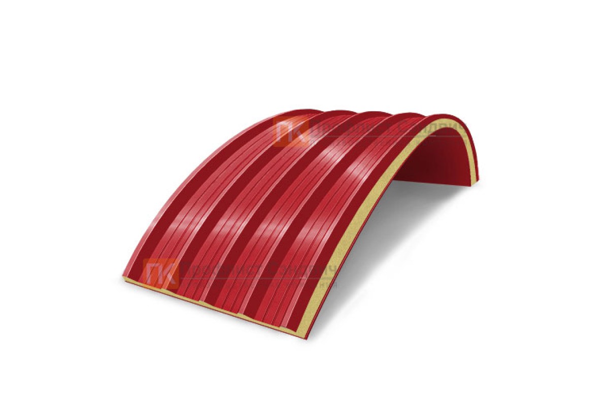 Купить сэндвич-панели арочные с пенополиуретаном, ширина 1000 мм, толщина 120 мм, 0.5/0.5, RAL3020 под заказ по индивидуальным размерам в любом объеме.