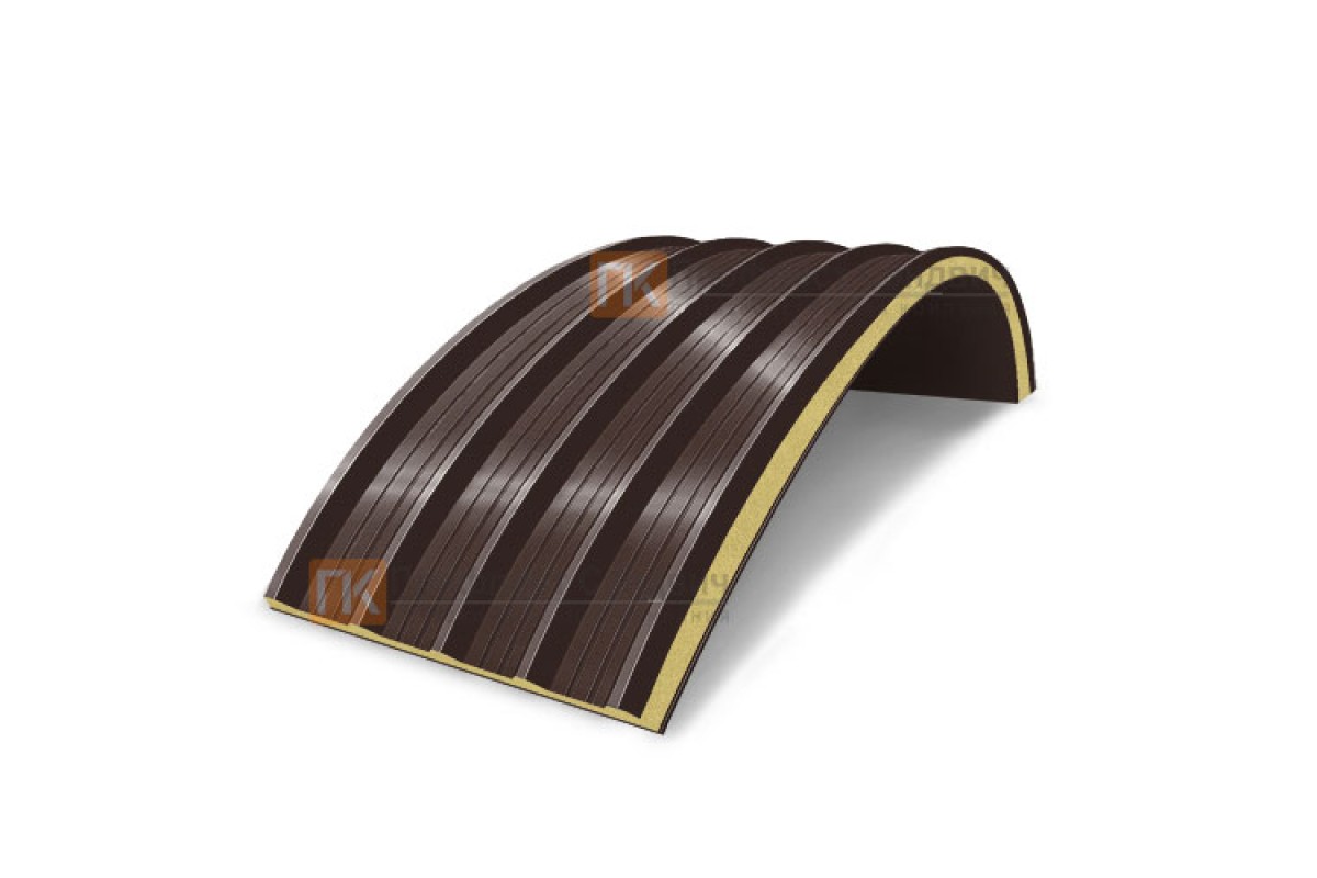 Купить сэндвич-панели арочные с пенополиуретаном, ширина 1200 мм, толщина 80 мм, 0.5/0.5, RAL8017 недорого. Цены и характеристики на сайте. Сертифицировано.