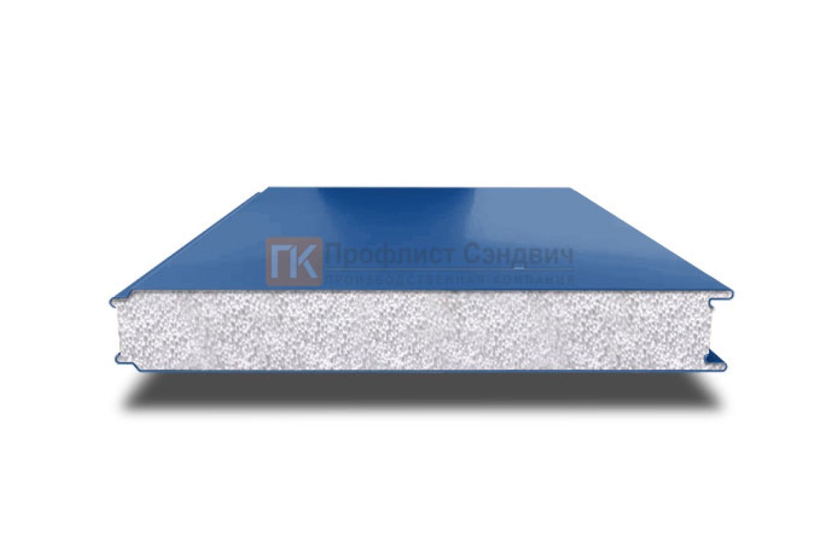 Купить сэндвич панели гладкие с пенополистиролом, ширина 1000 мм, толщина 100 мм, 0.5/0.5, RAL5005 под заказ по индивидуальным размерам в любом объеме.