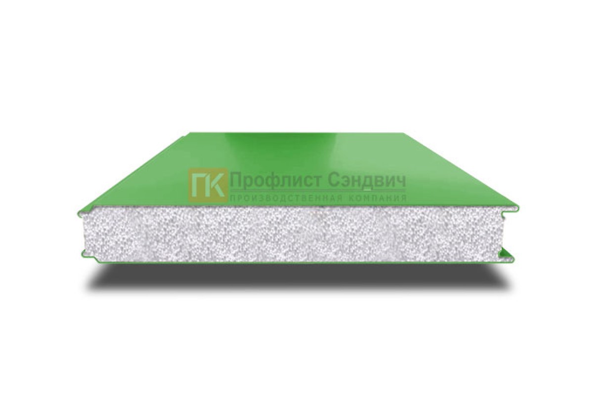 Купить сэндвич панели гладкие с пенополистиролом, ширина 1000 мм, толщина 200 мм, 0.5/0.5, RAL6018 недорого. Цены и характеристики на сайте. Сертифицировано.