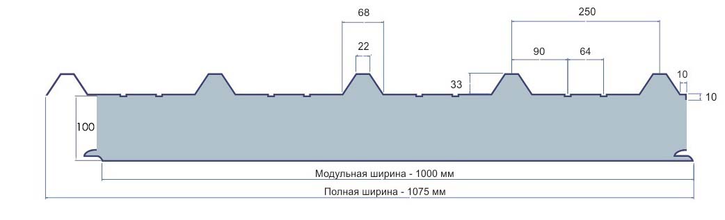 Сэндвич-панели кровельные с минеральной ватой отличаются высоким уровнем огнестойкости, к тому же имеют высокую плотность и теплопроводность 0,05Вт/(м*К). Это элементы со средним весом и такой же стоимостью, которые благодаря своему негорючему наполнителю используются практически повсеместно. Наружный металлический слой крышного утеплителя имеет обязательное профилирование в виде волны, микроволны, трапеции или накатки. Это важно в том случае, если полотно имеет большую длину и требуется основательно повысить его жесткость.