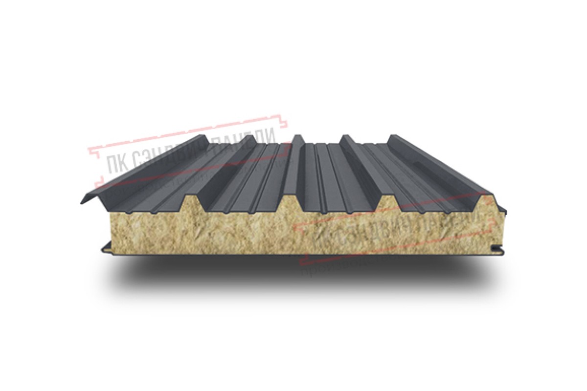 Купить сэндвич панели кровельные с минеральной ватой, ширина 1200 мм, толщина 10 мм, 0.5/0.5, RAL7024 по наиболее выгодной цене оптом и в розницу.