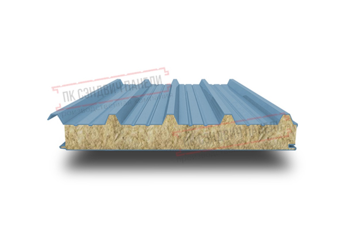 Купить сэндвич панели кровельные с минеральной ватой, ширина 1200 мм, толщина 180 мм, 0.5/0.5, RAL5024 недорого. Нижайшие цены! От производителя.