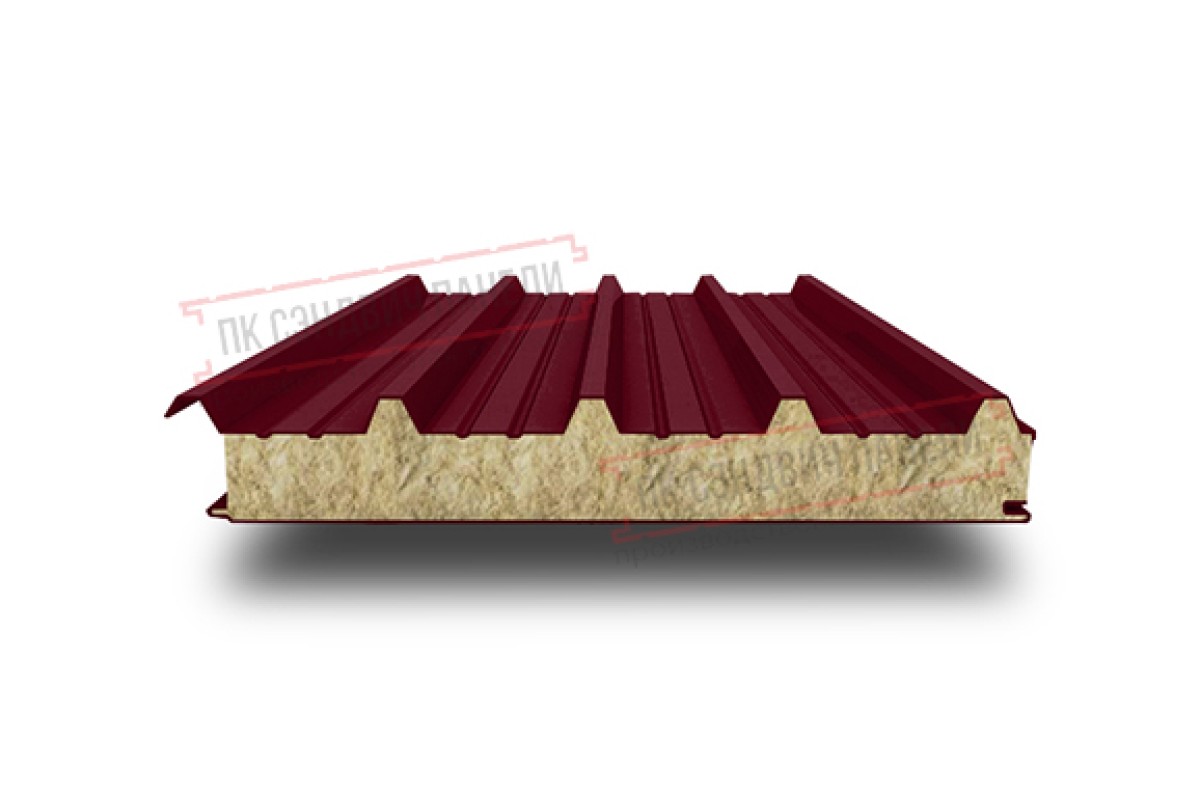 Купить сэндвич панели кровельные с минеральной ватой, ширина 1200 мм, толщина 40 мм, 0.5/0.5, бордо недорого для надежной эксплуатации в любых условиях.
