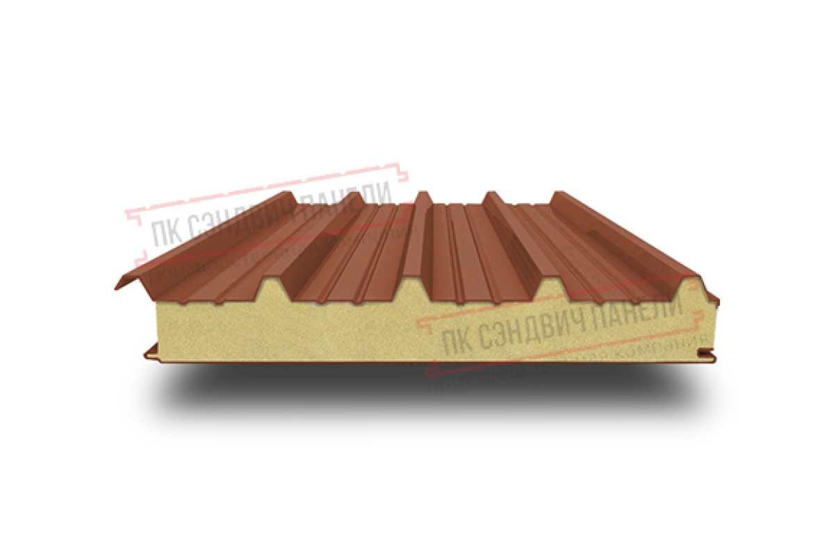 Купить сэндвич панели кровельные с пенополиизоциануратом, ширина 1000 мм, толщина 10 мм, 0.5/0.5, RAL8004 по закупочным ценам. 100% выгодно!