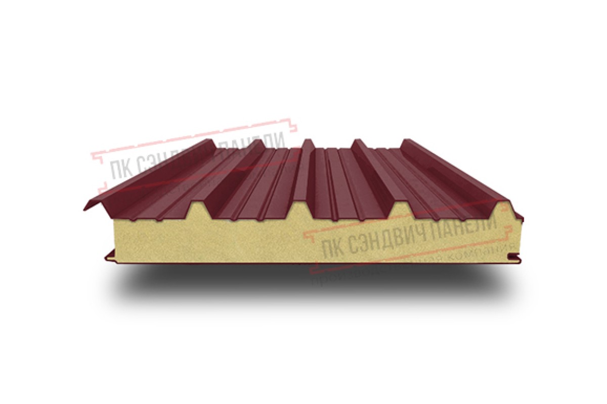 Купить сэндвич панели кровельные с пенополиизоциануратом, ширина 1200 мм, толщина 300 мм, 0.5/0.5, RAL3005 недорого. Цены и характеристики на сайте. Сертифицировано.
