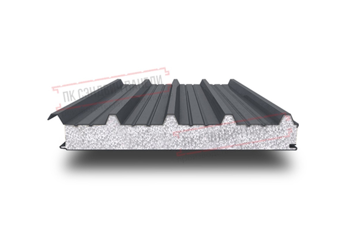 Купить сэндвич панели кровельные с пенополистиролом, ширина 1000 мм, толщина 140 мм, 0.5/0.5, RAL7024 гарантированно по доступной цене с любой формой оплаты.