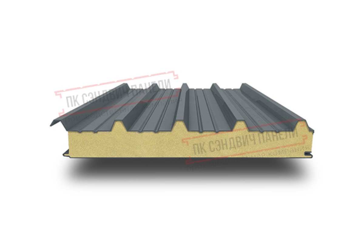 Купить сэндвич панели кровельные с пенополиуретаном, ширина 1000 мм, толщина 200 мм, 0.5/0.5, RAL7011 качественно и недорого по цене производителя.