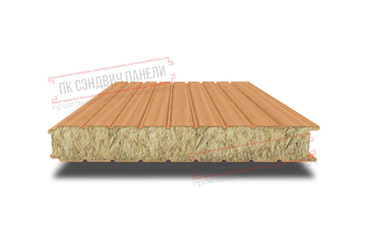 Купить сэндвич панели стеновые с минеральной ватой, ширина 1000 мм, толщина 100 мм, 0.5/0.5, дуб с гарантией качества оптом и в розницу.