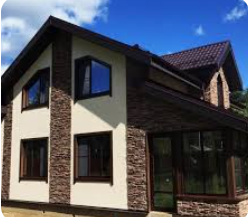 • Фасадные работы: Искусственный камень часто используется для облицовки фасадов зданий, создавая красивый и долговечный внешний вид.