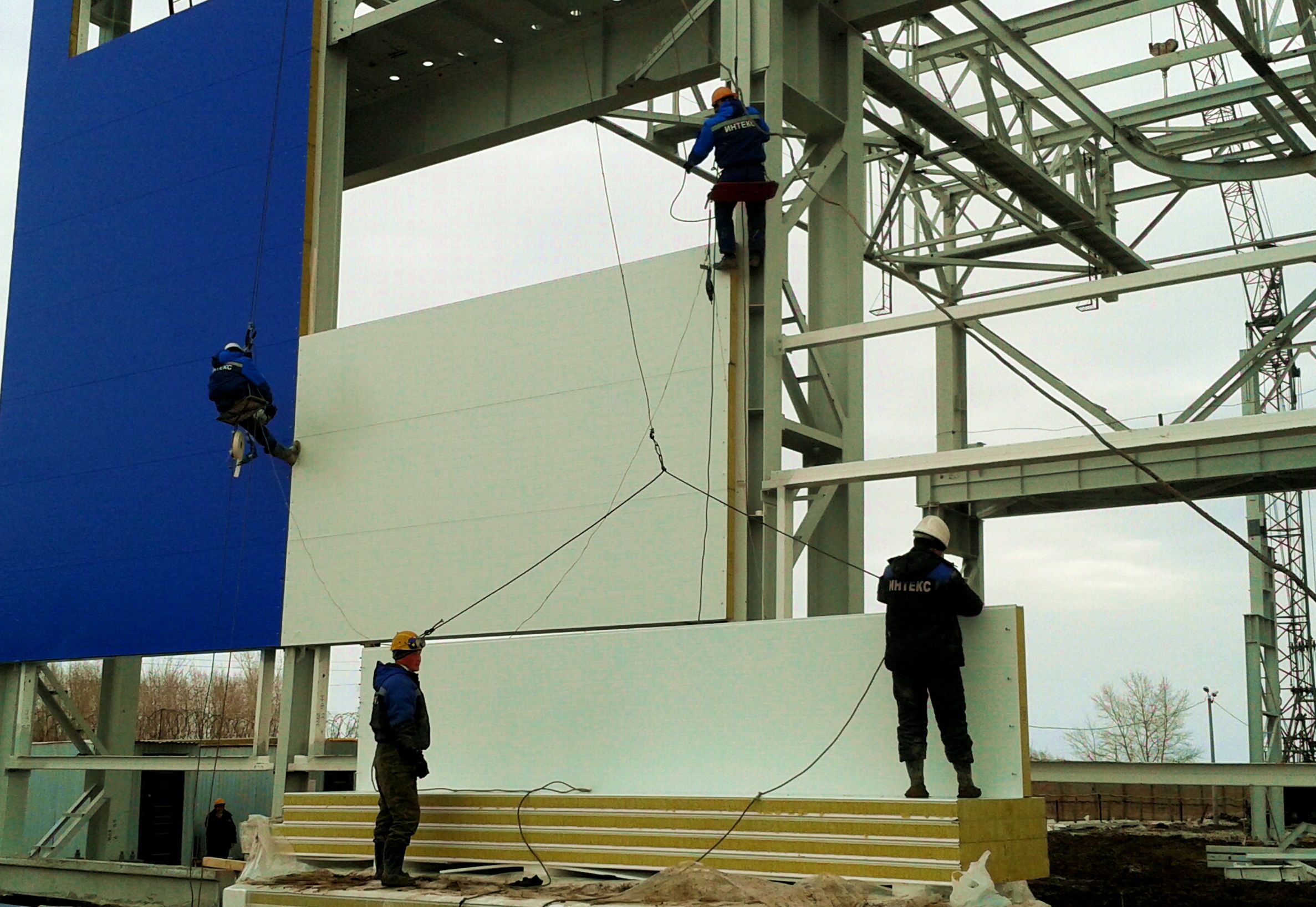 Завершается процесс монтажа уборкой лишних элементов и обеспечением прочного крепления стеновых сэндвич панелей на месте.
