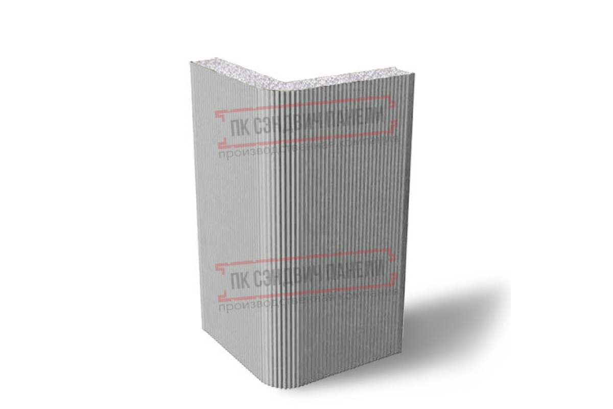 Купить угловую сэндвич-панель вертикальная из пенополистирола, 0.5/0.5, ширина 1000 мм, толщина 10 мм, RAL9006 без переплат. Точность размеров и широкий ассортимент. Лучшие специалисты помогут с выбором. Консультация бесплатно.