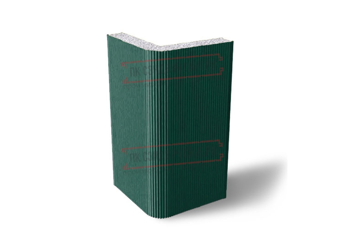 Купить угловую сэндвич-панель вертикальная из пенополистирола, 0.5/0.5, ширина 1000 мм, толщина 40 мм, RAL6005 качественно и недорого по цене производителя.