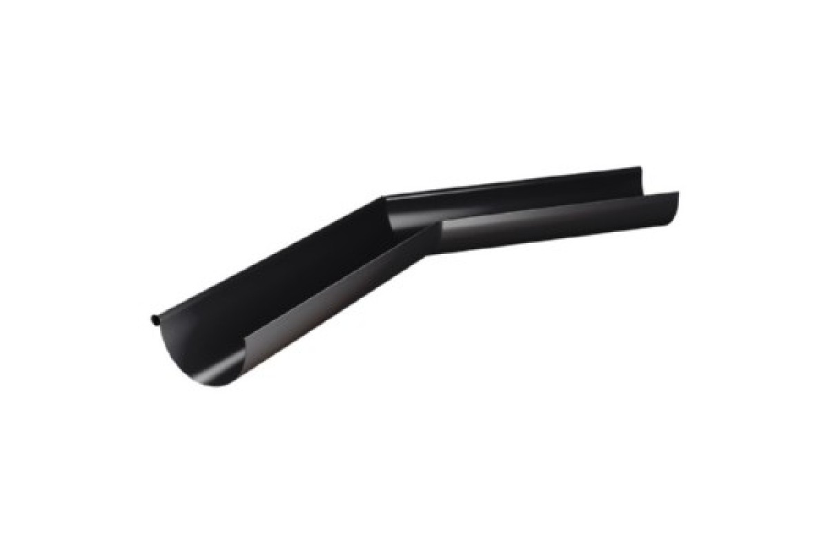 Металлическая система водоотвода Угол желоба внутренний 135 градусов D125 (ОЦ-01-9005-0.7) сделана из оцинкованной стали 0.7 мм толщиной. В качестве защитного барьера от солнечной радиации, механических повреждений, влаги применено покрытие Цинк. Такая система подходит как для частного дома, так и для промышленных зданий. Она долговечна, экономична и легко монтируется.