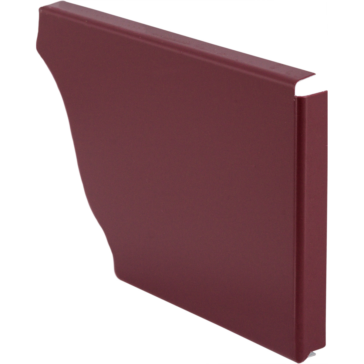 Заглушка желоба 120х86 левая изготовлена из стали промышленной оцинковки толщиной 0.5 мм. В качестве защитного барьера от механических воздействий, осадков, ультрафиолета использовано покрытие Полиэстер. Такая система подходит как для частного дома, так и для промышленных объектов. Она долговечна, экономична и эффективно отводит воду с кровли.